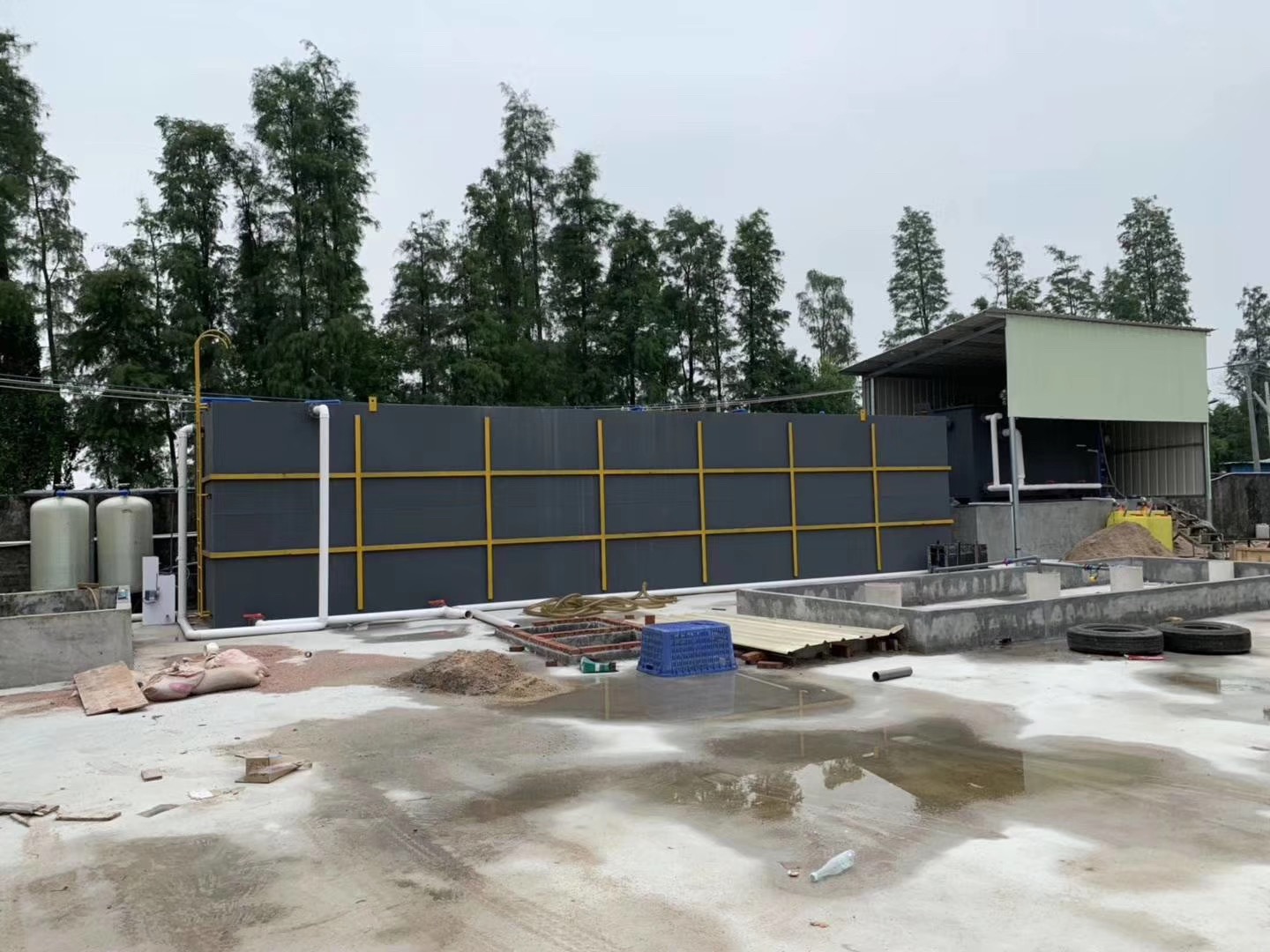 8、占地面积小,与一般净水构筑物相比,可节省占地<50%以上,高度在4.10米左右,室内外均可安置。